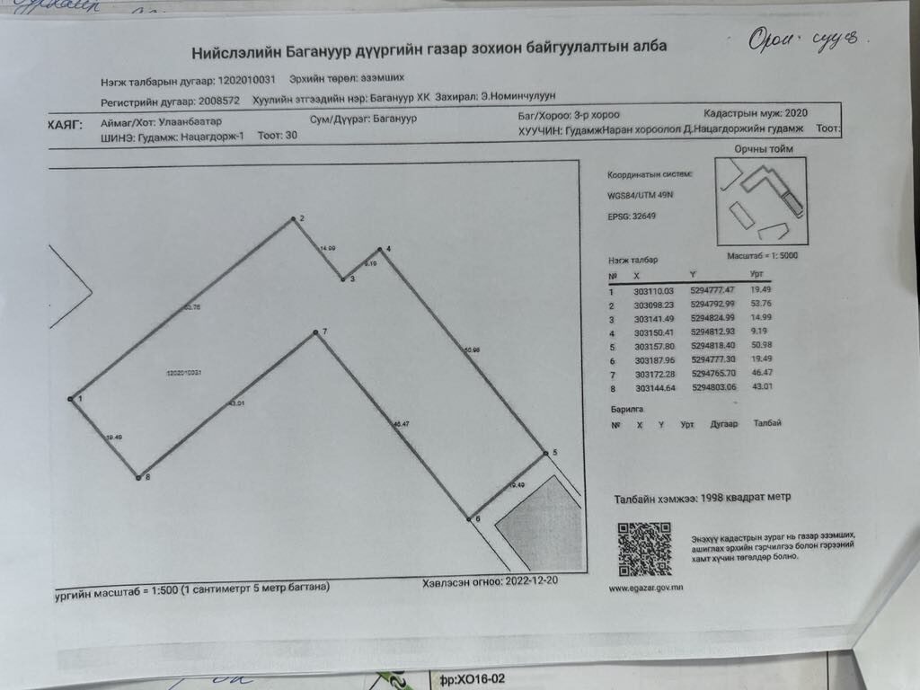 • Байршил: [Багануур дүүргийн 3-р хороо, шинэ төлөвлөлтийн хэсэгт]